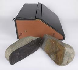 La série « D’une pierre » a été réalisée en 2017. Il s’agit d’un ensemble de 6 estampes accompagnées d’un galet scindé en deux, qui est la matrice qui a servi à réaliser ces estampes. L’artiste ramasse des galets fissurés dans le lit de la Gave, qu’il casse en deux avant de réaliser une impression par pression de l’intérieur de ces galets, révélant ainsi leur structure cachée. La série est comprise à la fois comme le résultat d’une production et son processus : la matrice est indispensable pour comprendre la manière dont l’artiste a travaillé. L’artiste envisage la série « D’une pierre » comme une « mémoire des puissances de surrection inscrites dans la masse et traces érosives des déplacements, [une] rencontre archaïque avec le minéral, […] une fissure mémorisée. ».