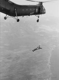 C'est à partir d'une photographie découverte dans les archives de son père, ancien militaire, qu'est née cette sérigraphie. Les lettres « ART » se détachant sur la carlingue, sont un probable acronyme militaire sans lien avec toute idée de création, mais elles revêtent dans cette réappropriation d'image une toute autre dimension. Ce saut dans le vide, qui peut aussi évoquer celui d'Yves Klein, est un entrainement de parachutiste. Il devient, pour Michèle Sylvander, la métaphore du travail de l'artiste. Ce hasard poétique, qui touche à l'intimité de l'histoire de Michèle Sylvander, artiste et fille de militaire, nous interpelle aussi sur le sens que l'on peut donner aux images selon leur contextualisation.