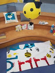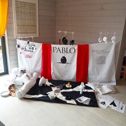 Contient : 1 bande de tissu imprimée (salle de bain). 1 rideau de douche. 1 miroir. 1 lampion. 1 tapis. 2 coussins. 1 grand coussin avec le visuel de la couverture de l'album. 1 corde. 2 cordes à linge élastiques avec pinces métalliques. 20 pinces à linge en bois. 4 crochets métalliques. 1 tapis de lecture en tissu "Maison" - 6 carrés en tissu et d'autres matériaux (cuisine, salle de bain, salon, chambre d'enfant, chambre et jardin). 1 mobile bébé noir et blanc : maison. 1 marionnette fille bébé en tissu. 1 marionnette fille en bois et tissu. 1 corbeille en plastique - baignoir bébé. 7 jeux de bain (2 gobelets, 1 bateau, 4 gobelets fontaine). 5 cartes avec leurs supports en liège - jeu de taille / développement de la fille. 1 jeu de société "Mes premiers jeux - Pyramide d'animaux". 1 livret du module "Module Je grandis". 1 livret "Album, modules d'animation et activités de prolongement". 1 grande valise sur roulettes contenant l'équipement du module. 1 petite valise à roulettes contenant les livres accompagnant le module.